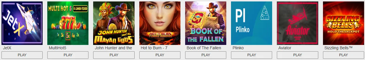 Well, you may access such crash staff as Aviator and JetX, they are given right in the menu at the top. Note that the main idea here is to cash out at the right time. If you manage to do it, you will be able to collect nice winnings.