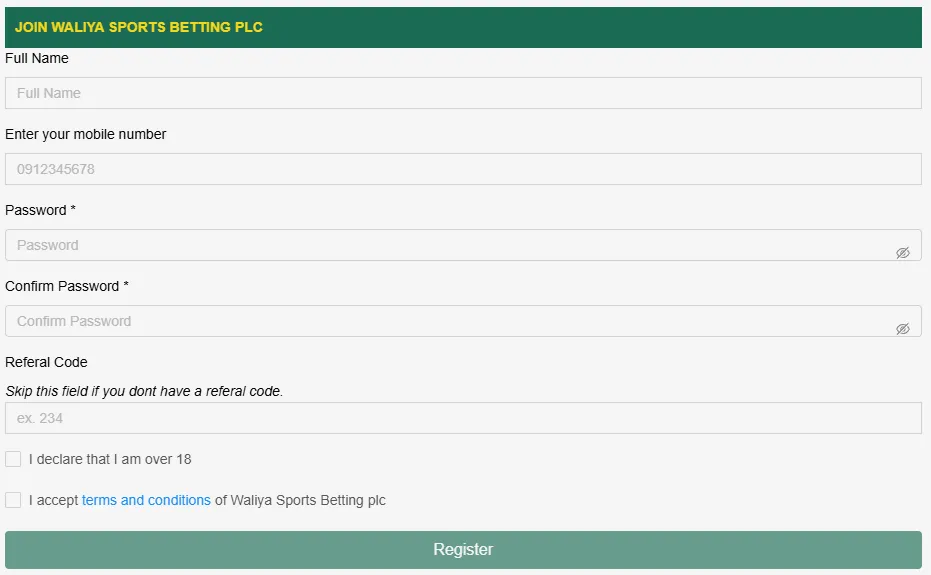 Waliya Sports Betting plc holds a license from the Federal Democratic Republic of Ethiopia National Lottery Administration. So, playing here is legal. However, you should be aware that the minimum required age is 21. You can’t take part in anything if you haven’t reached it.